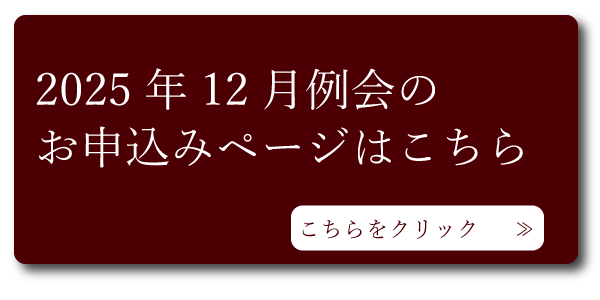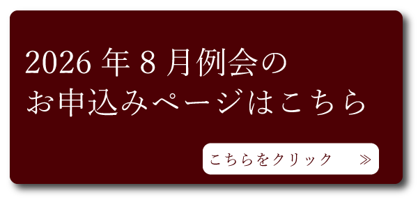 | お願い | 会場へのお料理の手配・参加者名簿などがございますので、例会参加の際は、必ず事前のお申し込みをお願いいたします。 |